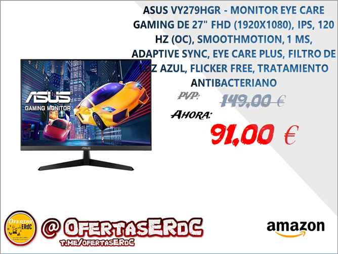 Panel IPS FHD de 27″ – 68,58 cm con frecuencia de actualización de 120 Hz (OC) para una visualización de video fluida y juegos casuales
