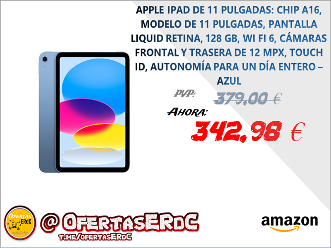 POR QUÉ EL IPAD — El iPad de 11 pulgadas sube de nivel con el potente chip A16, la espectacular pantalla Liquid Retina, cámaras avanzadas, redes wifi ultrarrápidas,* conector USB C y cuatro colores fantásticos.* Es la herramienta ideal para trabajar, dar rienda suelta a tus ideas y mantener el contacto con los tuyos.