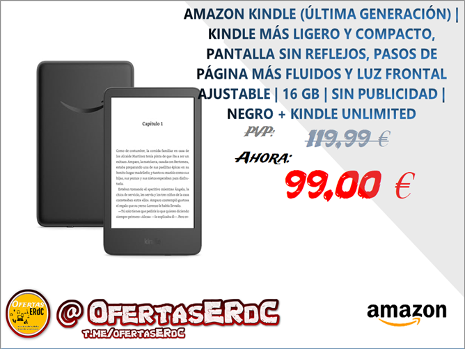 El Kindle más ligero y compacto: ahora con una luz frontal más potente en el nivel de máxima intensidad, mayor contraste y pasos de página más fluidos, para que disfrutes aún más de la lectura.