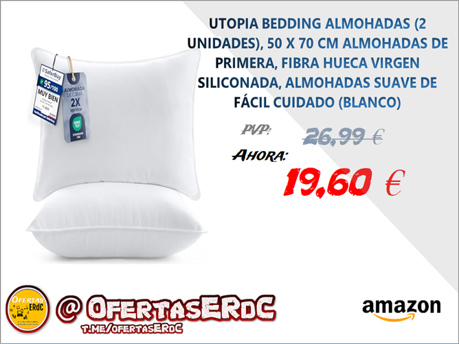 Pack de Almohada : Incluye un juego de 2 Almohadas de suave tela blanca de 50 x 70 cm