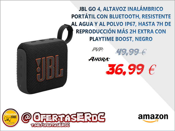 Contenido de envío: 1x JBL GO 4 Altavoz portátil a prueba de agua y polvo con Bluetooth, 7h de reproducción continua con una sola carga, USB-C, guía de inicio, hoja de seguridad, negro