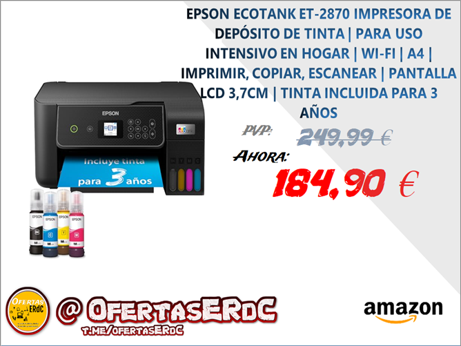 Impresión cómoda y fluida. La caja incluye tinta suficiente para hasta 3 años de uso*. – Ahorra hasta un 95 % en costes de impresión* con los depósitos de tinta rellenables
