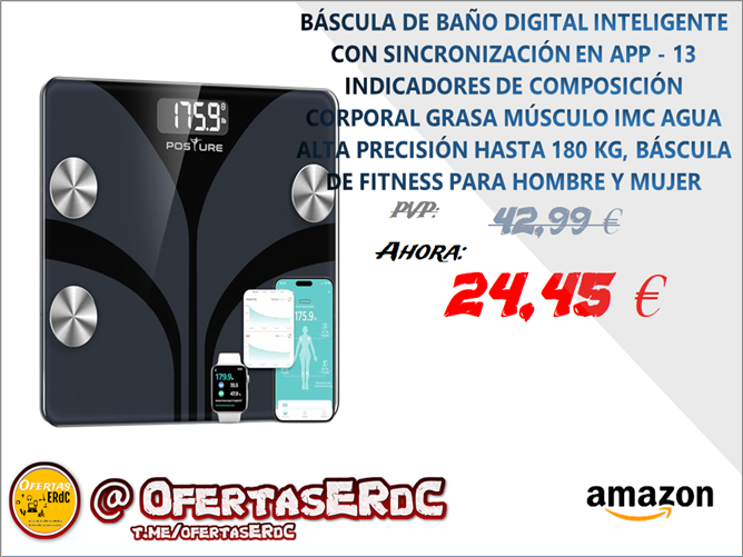 Báscula de alta precisión -equipada con 4 sensores de alta precisión y 4 electrodos de alta sensibilidad, con tecnología avanzada para garantizar lecturas precisas con divisiones de 0.2 lb/100 g y una capacidad máxima de 400 lb/180 kg en incrementosde 0.1 lb/0.05 kg. Con indicador de bajo consumo/sobrecarga, tecnologia de encendido automático al pisar y 2 pilas AAA incluidas.