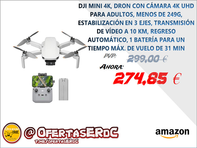 Incluye DJI Mini 4K, 1 batería, un RC-N1C y todo lo que necesitas para volar fácilmente grabando en 4K. Una opción genial y asequible para principiantes.