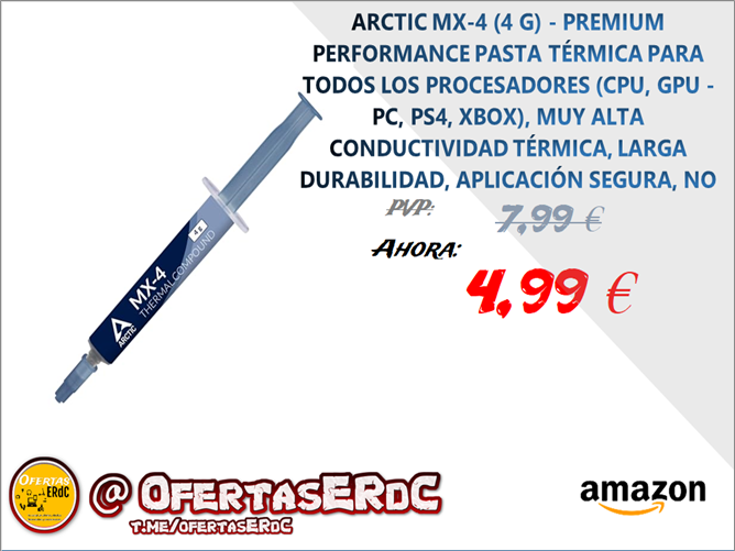 EXCELENTE RENDIMIENTO: La pasta térmica ARCTIC MX-4 de micropartículas de carbono garantiza una conductividad térmica extremadamente alta. Así, el calor de la CPU/GPU se disipa de forma rápida y eficiente