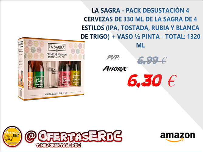 Pack de 4 cervezas de La Sagra + 1 vaso de regalo