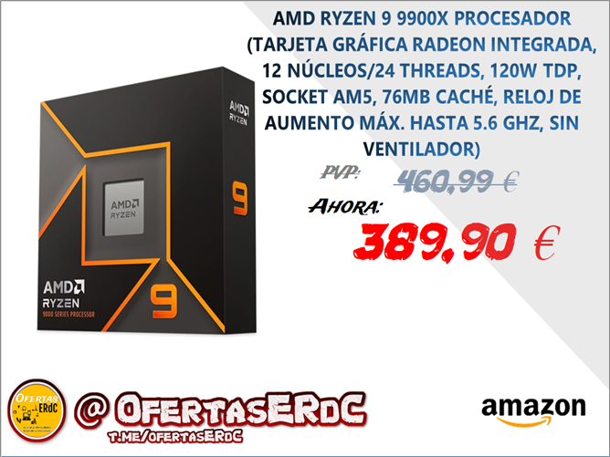 CARACTERÍSTICAS AVANZADAS: Con un TDP de 120 W, y sus 76 MB de Caché L3, el Ryzen 9 9900X está cortado para lograr grandes cosas; también cuenta con un chip gráfico integrado AMD RDNA 2