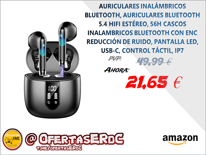 56 Horas de Reproducción y Pantalla de Potencia Led: Los cascos inalambricos proporcionan hasta 8 horas de uso con una sola carga, más el estuche de carga para un total de 56 horas de uso. En solo 1 horas, puedes recargar completamente el estuche debido a que dispone de carga rápida USB-C. El diseño de pantalla LED% le permite controlar el estado de la batería, precisión la potencia restante de los auriculares bluetooth inalámbrico y la funda de carga.