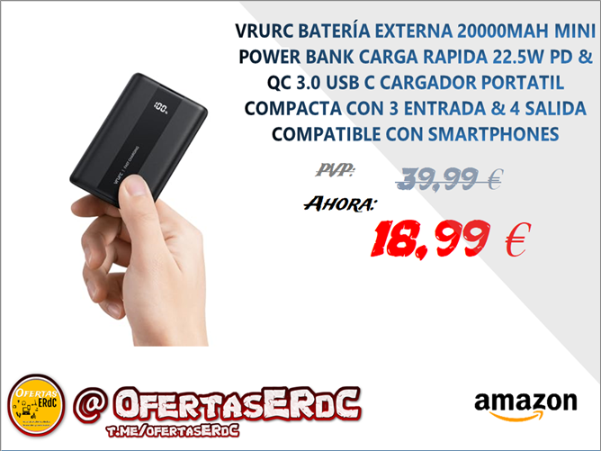 ✅【𝟐𝟐.𝟓𝐖 𝐂𝐚𝐫𝐠𝐚 𝐑á𝐩𝐢𝐝𝐚】 Power Bank soporta Power Delivery (PD) y Quick Charge (QC4.0), 4 veces más rápida que la carga normal. Power bank carga rápidamente tu IPhone 12 hasta el 50% en 30 minutos