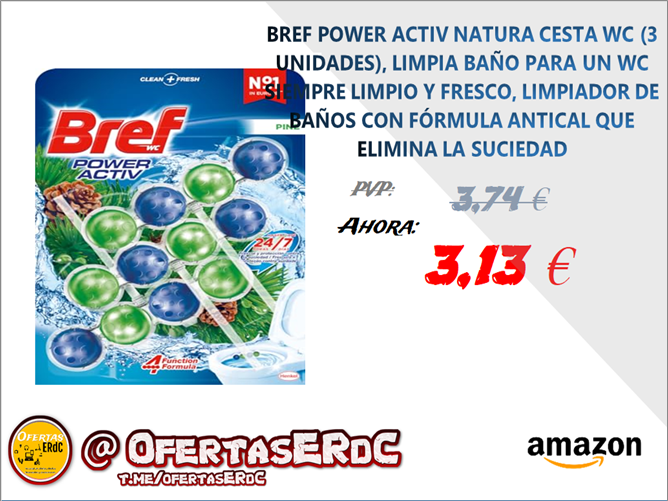 Envío: Bref Power Activ Natura Cesta WC, limpiador WC, frescor y limpieza continuos, diseño discreto y moderno, hasta 240 descargas, pack de 10 unidades.