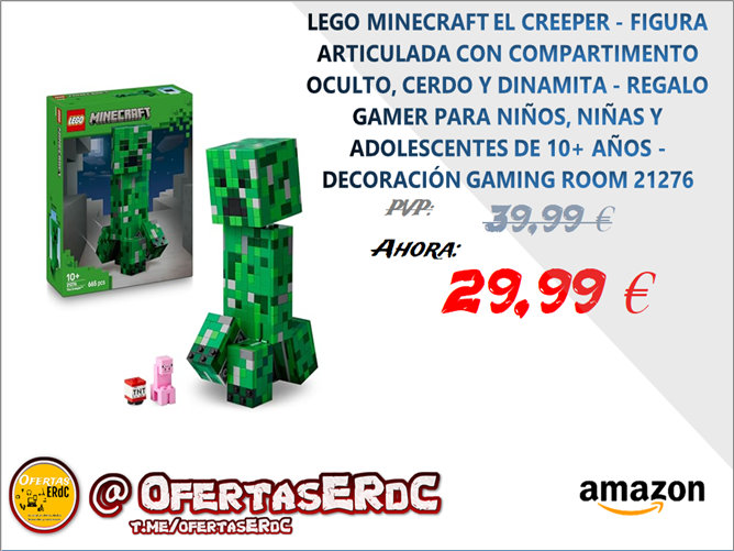 Figura articulada del Creeper de Minecraft: Este kit de construcción en ladrillos LEGO para niños y niñas a partir de 10 años es un set para que los fans de Minecraft jueguen y decoren su cuarto de juegos