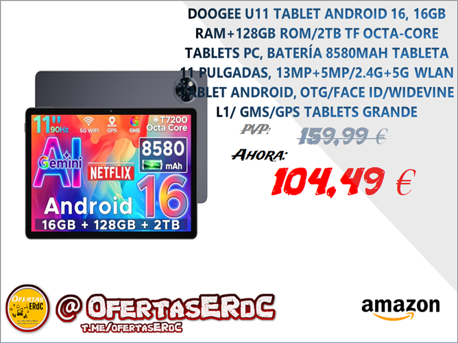 【Tablet Android 16 + Gemini AI + Octa-Core 】DOOGEE U11 tablet 11 pulgadas está equipada con el último sistema android 16, que ofrece seguridad mejorada, control avanzado de permisos y optimización de aplicaciones. La tableta baratas y buenas cuenta con el procesador octa-core Unisoc T7200, capaz de garantizar un rendimiento fluido incluso durante multitarea exigentes. La integración de Gemini AI mejora el rendimiento en traducciones en tiempo real, edición de fotos o gestión de recursos.