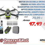 【Mini Drone Multifuncional】: Para despegar, aterrizar o regresar, simplemente presiona un botón del control remoto o utiliza la aplicación gratuita. El modo sin cabeza, la trayectoria de vuelo personalizada, el mantenimiento de altitud / vuelo estacionario automático, la voltereta a 360°, el control gestual para selfies y los ajustes de 3 velocidades ofrecen más opciones de vuelo.
