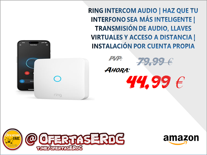 (NOVEDAD) MANOS LIBRES CON ALEXA: controla Ring Intercom Audio mediante comandos de voz con dispositivos compatibles con Alexa. ¿Tienes las manos ocupadas? Responde al interfono o abre la entrada al edificio en modo manos libres.
