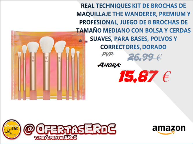 El Real Techniques El kit de brochas de maquillaje Wanderer incluye: brocha multitarea en ángulo RT 426, brocha multitarea RT 407, brocha correctora RT 246, brocha pulidora de base RT 249, brocha para difuminar sombras RT 358, brocha para sombras cónica RT 359, brocha delineadora en ángulo RT 356, brocha para difuminar RT 332 y bolsa