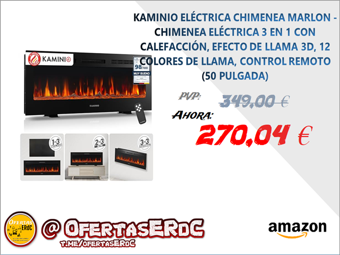 FUEGO DE CHIMENEA ÚNICO: La chimenea 3 en 1 de alta calidad impresiona con una tecnología de llama perfectamente ajustada y eficiente en energía, complementada con efectos de llama en 12 colores