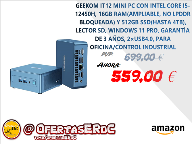 🔥【Procesador con Intel i5-12450H】– El GEEKOM IT12 Mini PC está equipado con un procesador i5-12450H de 12th generación, con 8 núcleos, 12 hilos y hasta 4,4 GHz. La gráfica integrada con Intel UHD soporta salida 8K, ofreciendo una alta calidad de imagen y una visualización fluida. Ideal para trabajo de oficina, desarrollo de software, edición de imágenes y otras aplicaciones profesionales. (𝙋𝙧𝙤𝙙𝙪𝙘𝙩𝙤𝙨 𝙂𝙚𝙣𝙪𝙞𝙣𝙤𝙨 𝙮 𝙎𝙚𝙜𝙪𝙧𝙤𝙨: 𝙎𝙤𝙡𝙤 𝙚𝙣 𝘼𝙢𝙖𝙯𝙤𝙣 & 𝙚𝙣 𝙡𝙖 𝙒𝙚𝙗 𝙊𝙛𝙞𝙘𝙞𝙖𝙡 𝙙𝙚 𝙂𝙀𝙀𝙆𝙊𝙈 | 𝙀𝙫𝙞𝙩𝙖 𝙄𝙢𝙞𝙩𝙖𝙘𝙞𝙤𝙣𝙚𝙨.)