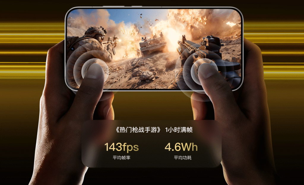 También integra el nuevo R1 E-sports Graphics Chip, encargado de optimizar la tasa de cuadros y la respuesta táctil, junto al S1 Sky Signal Chip, desarrollado para mejorar la estabilidad de la señal de red. Todo esto se gestiona con el GT Performance Engine 3.0, que ajusta automáticamente la potencia y el consumo según las necesidades.