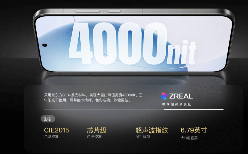 El brillo máximo alcanza los 7000 nits, un récord en smartphones actuales, acompañado de profundidad de color de 10 bits, muestreo táctil instantáneo de 3200 Hz y lector ultrasónico de huellas bajo la pantalla.