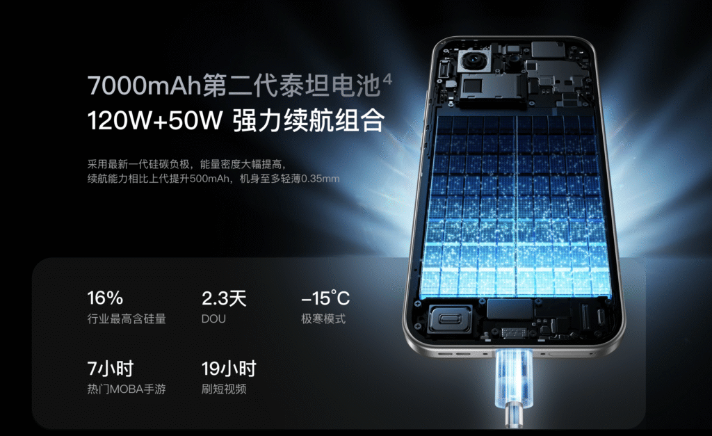 El GT8 Pro incluye una enorme batería Titan de 7000 mAh, compatible con carga rápida SUPERVOOC de 120W, capaz de llenar la batería en menos de 25 minutos.